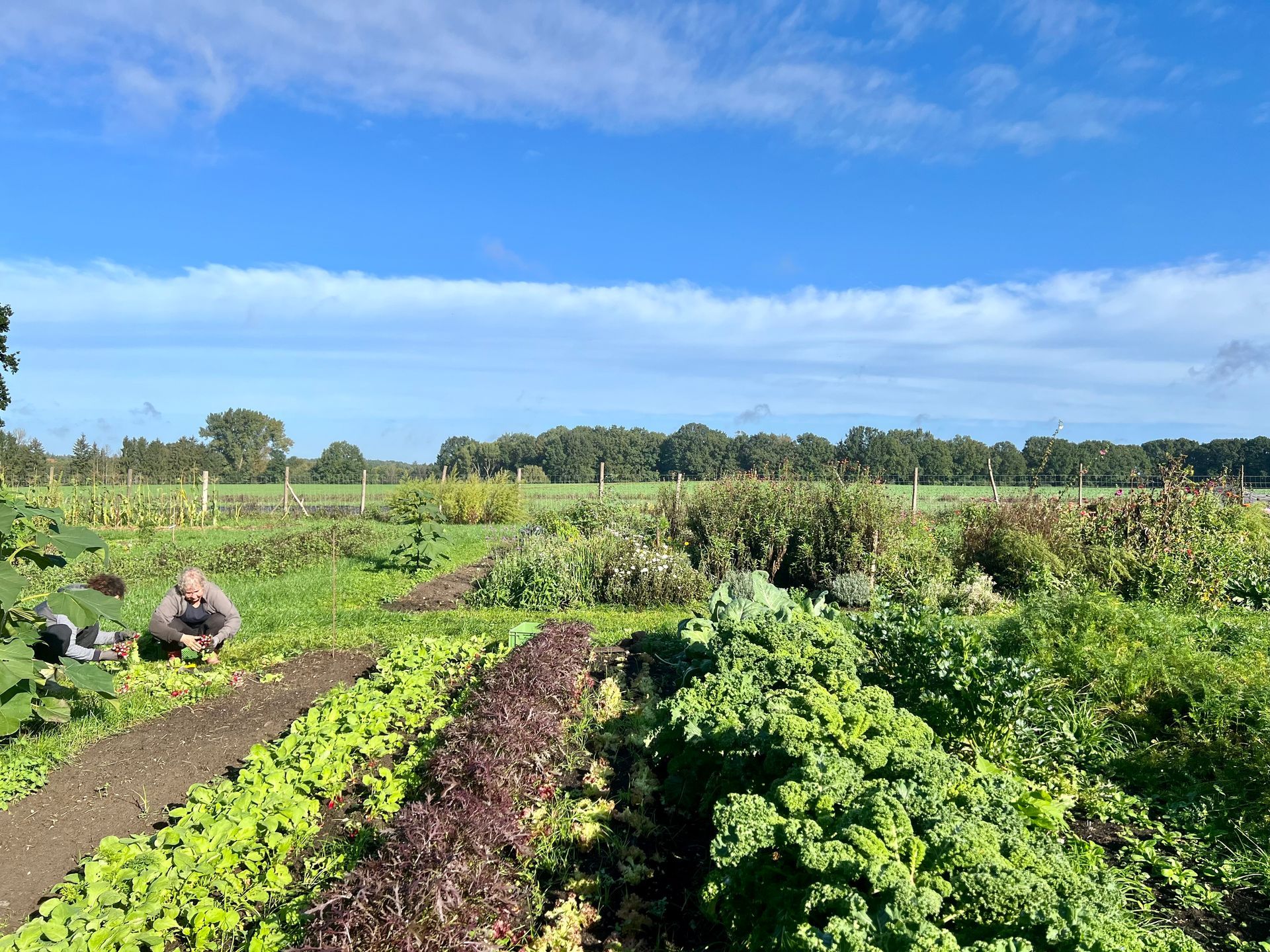 In der Natur kommen unbedeckte Böden (außer du stehst in der Wüste) so gut wie nicht vor. Daher ist auch bei uns der Boden ständig mit Gemüse oder Zwischenfrüchten bedeckt, die zusätzlich viel Sonnenlicht sammeln und dem Bodenleben zukommen lassen.